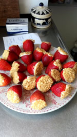 sprøjtepose. Knus en kiks og dyp det fyldte jordbær i raspen. Se