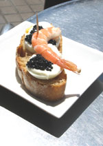 Server kaviar eller lakserogn og en skål creme fraiche. Tomat og