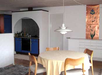 med meget lys i stuen. Opløbet til