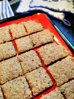 1 dl. solsikkekerner, 1 dl sesamfrø, 1 dl hørfrø, 1 dl mel, ½dl olie,