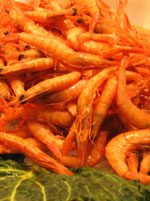 skæres i små tern og blandes i sammen med rejer og ærter. Salaten